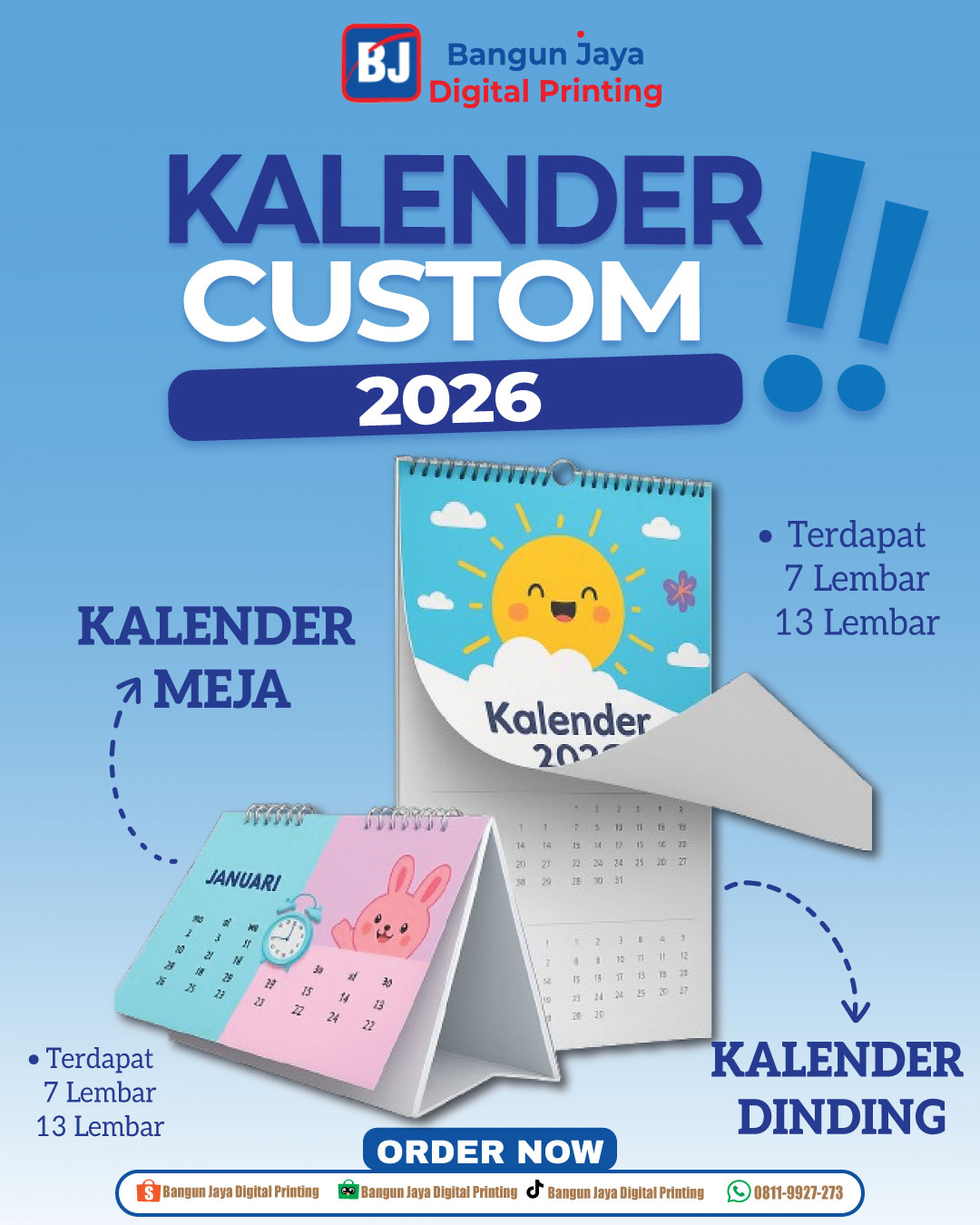 Kalender merupakan salah satu media promosi yang cukup efektif, hal ini dikarenakan kalender yang terpasang akan hampir dilihat tiap hari, sehingga kemungkinan pelanggan Anda untuk mengingat perusahaan Anda dan produk yang Anda tawarkan sangat besar. Cetak kalender sangatlah penting. Kalender sangat cocok untuk promosi usaha, baik usaha skala besar hingga skala kecil seperti promosi toko, promosi bengkel. Selain itu cocok untuk kalender promosi sekolah / pondok pesantren, yayasan, instansi pemerintahan, lembaga swadaya masyarakat, kalender desa, kalender puasa, kalender hijriyah, kalender akademik dan masih banyak lagi.